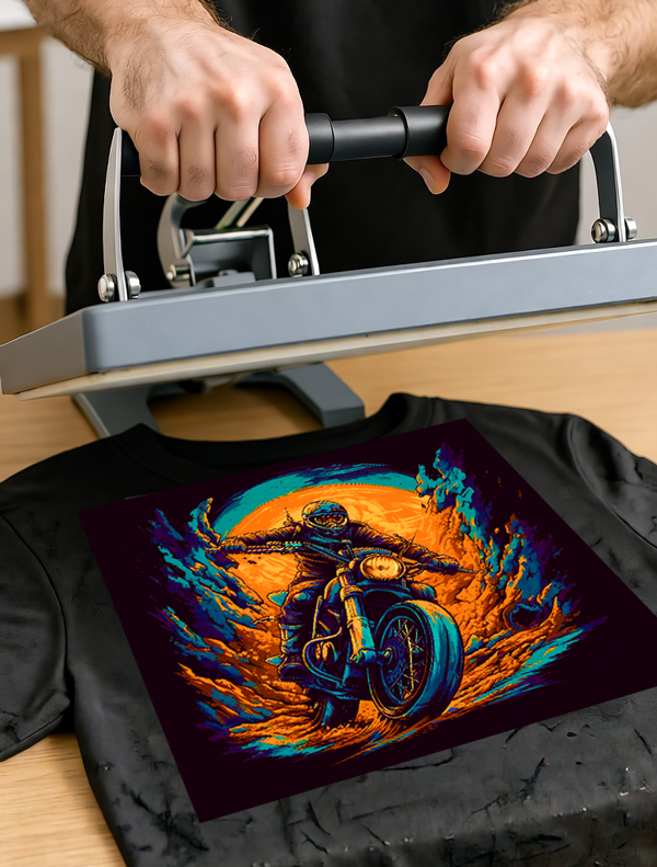 To apply a DTF transfer with a heat press, first preheat the press to 280–320°F (140–160°C) and pre-press the garment for about 10 seconds. Position the transfer on the garment, then press for 5–15 seconds with medium to firm pressure, depending on the manufacturer's instructions. Peel the film (either hot, warm, or cold, depending on the transfer type), and then re-press for a final 5–10 seconds with parchment or a Teflon sheet over the design for added durability.