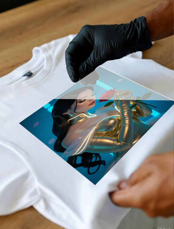 This process delivers durable, flexible, and color-rich prints that work on cotton, polyester, blends, and even dark-colored garments.